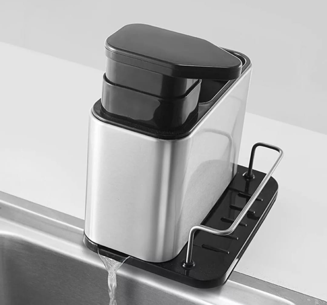 - ✅ Diseño 3 en 1: dispensador, porta esponja y organizador